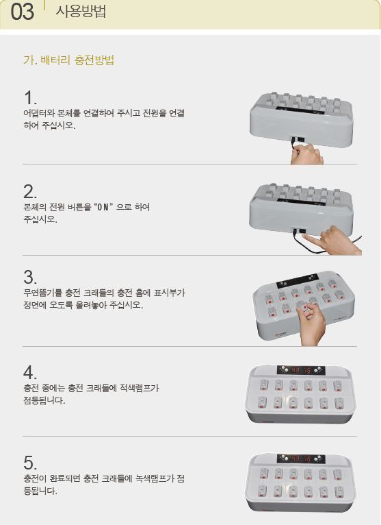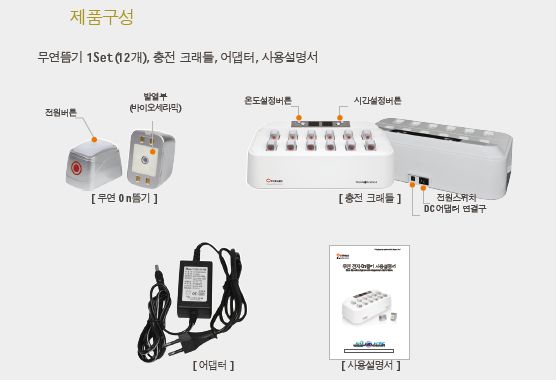 * 제품구성 - 전자뜸기 12개 + 충전기 1개 + 어댑터 + 사용설명서 + 전자뜸 전용 의료양면스티커 500매