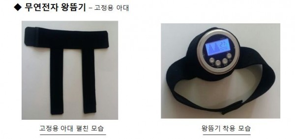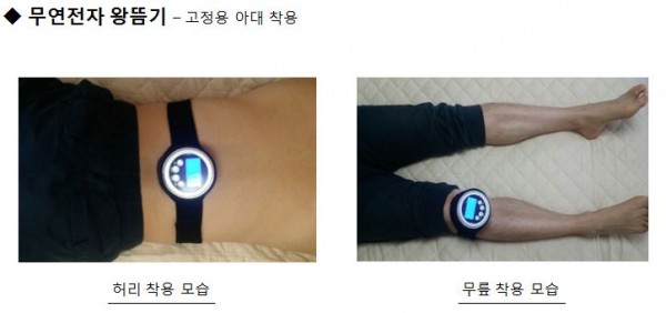 복부, 허리, 무릎 등의 부위에 왕뜸기 전용 아대를 착용하여